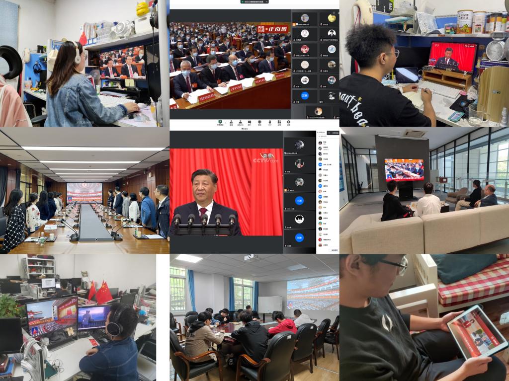 第一时间组织学院党委委员、各教工党支部、学生党支部代表在先进制造大楼A308集中收看了党的二十大直播,学院广大教职员工也通过多种方式收看会议,认真学习大会报告。