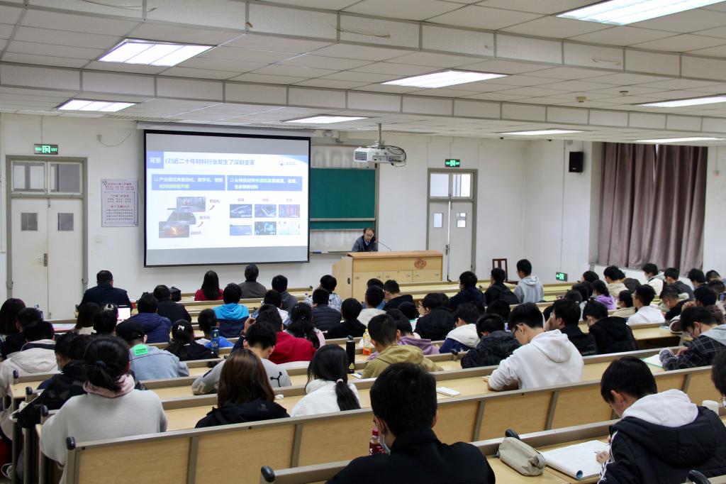 廖敦明教授介绍学院本科生培养方案。学院围绕“厚基础、重前沿、强创新、宽视野”的人才培养新理念,面向国家、社会对材料人才的实际需求,在3个本科专业下开设7个前沿特色班:材料成型及控制工程专业下设增材制造、智能成形、工业软件方向3个特色班,材料科学与工程专业下设新金属与人工智能、新能源材料、智能材料方向3个特色班,电子封装专业下设有集成电路封装技术方向1个特色班。学院以指导老师、特色课程、实践基地相结合的方式,制定培养方案,重构前沿方向课程体系,实行新生班主任制,持续推进“名教材、名课程、名师”建设等举措,提升本科生培养质量。