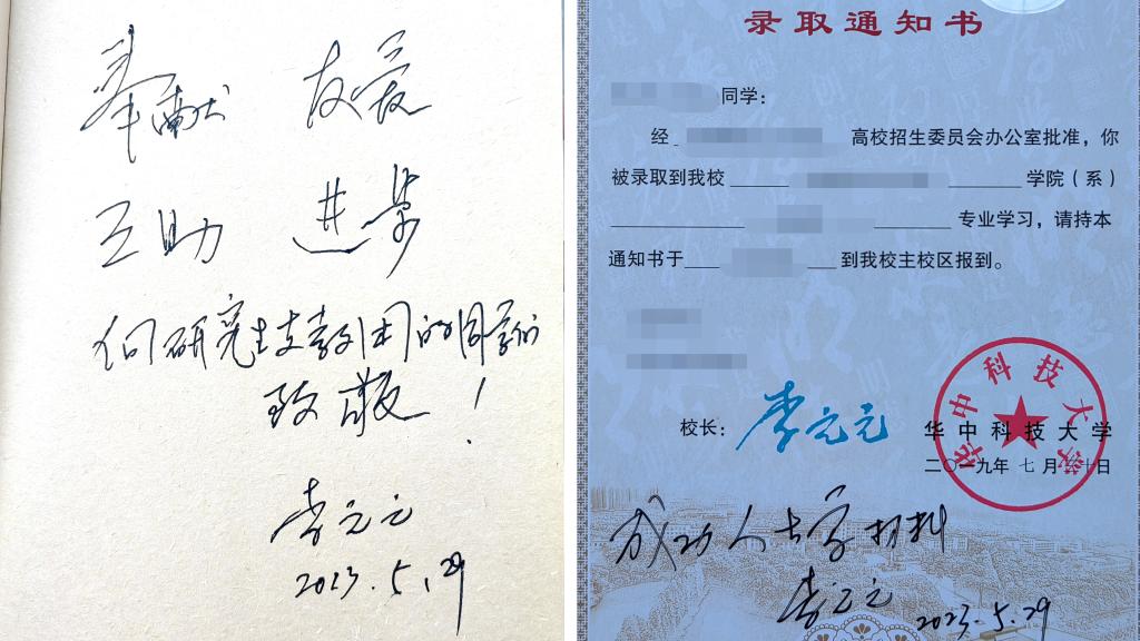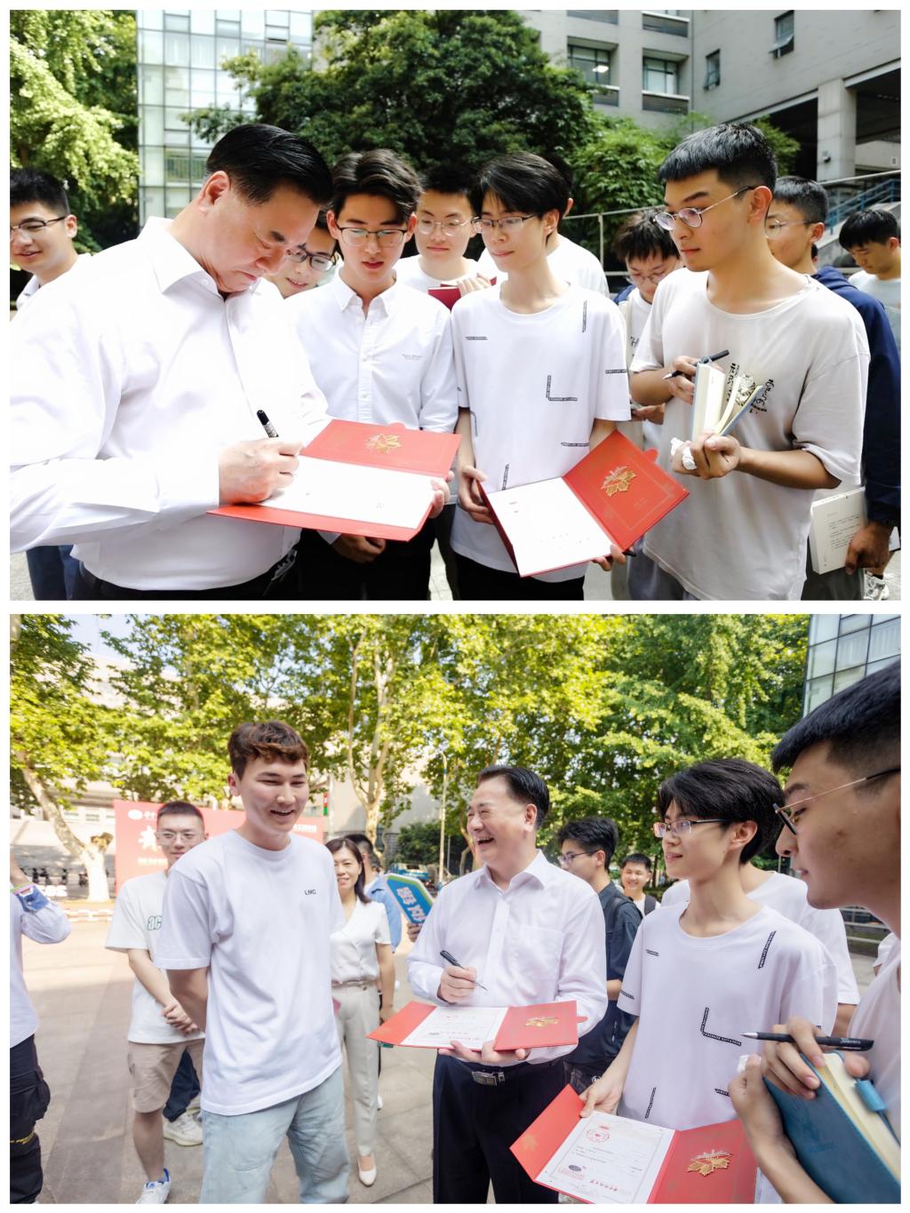 合影后,李元元书记被热情的同学们围拢着,有的拿出录取通知书、有的拿出校历,纷纷邀请李元元书记签名并写下毕业祝福,李元元书记欣然应允,高兴地与师生亲切交谈,倾听大家的毕业心声,关心同学们的毕业去向。“回首是喻园芳华,向前是有为青年”“四年奋斗已圆满,扬帆启航再出发”……一句句贴近学生、接地气的亲笔寄语,成为同学们毕业季宝贵的礼物。