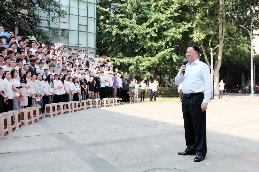 2023届本硕博499名同学,在先进制造大楼西楼广场拍摄毕业照,校党委书记李元元院士带着对毕业生的寄语和祝福赶到现场与毕业生合影留念。