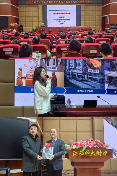 (通讯员:刘子灵)12月26日、27日,黄云辉教授、方淳副教授一行赴江西师大附中和莲塘一中,面向高一高二500余名学生,开展《锂离子电池的前世今生》科普讲座和学校招生宣讲。