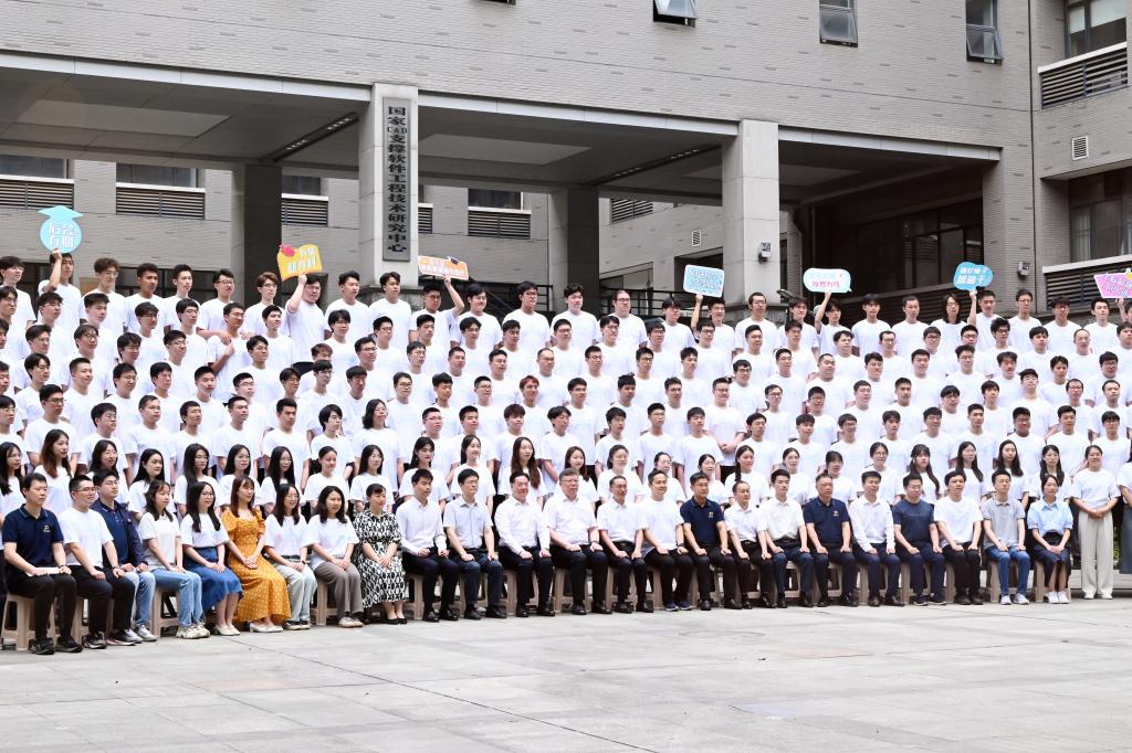 2024届本硕博全体同学在先进制造大楼西楼广场拍摄毕业照,校长尤政院士,原校党委书记、我院教授李元元院士带着对毕业生的祝福到现场与毕业生合影留念, 参加合影的还有学院部分老师代表。毕业生张程同学主持毕业合影。