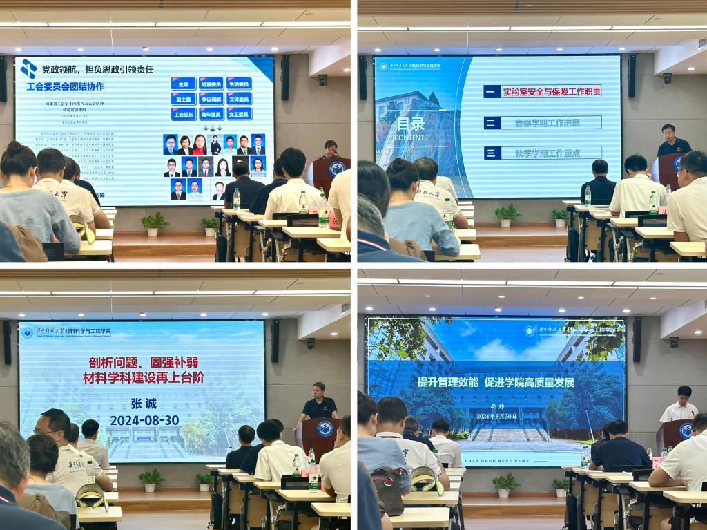 工会副主席刘洁汇报学院工会工作,工会认真履行职责,担负思想政治引领责任,继续开展“与书有约”等活动,落实“五慰问”制度,丰富体育活动,增强教工交流, “先进基层工会”等工会集体和个人荣誉。院长助理刘鑫旺从工作职责、春季学期工作进展和秋季学期工作重点三个方面汇报实验室安全与保障工作。院长助理张诚汇报材料学科建设工作的成绩、问题与工作计划。院长助理赵帅从充分发挥委员会功能、强化学院国重协同、中心赋能促进发展、行政队伍提质增效四个方面作学院管理工作汇报。