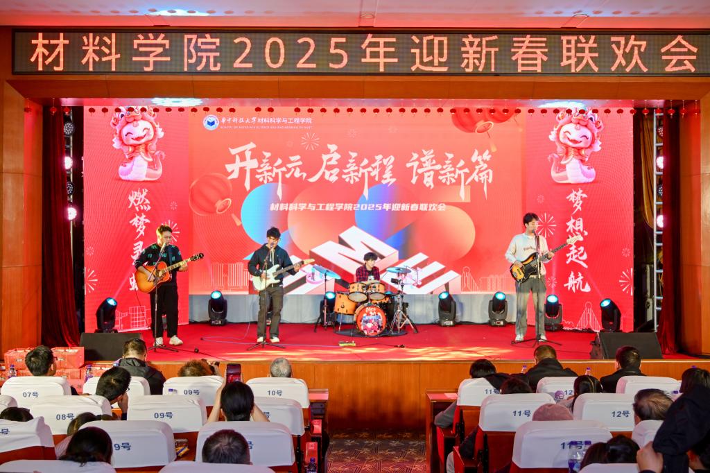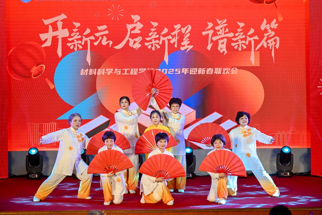 校党委宣传部副部长顾馨江、校党委教师工作部副部长张发雄、81级焊接专业校友申学军、81级焊接专业校友朱援祥、99级材料成型及控制工程本科校友张伟、01级材料加工工程研究生校友冯仪、湖北省京剧院国家一级演员宦桂珠等参加活动。联欢会首先总结了2024年度学院取得的一系列突出成果,为作出突出贡献的教职工代表敬献鲜花。学院各中心与离退休老年艺术团的老师、学生代表们以演唱、京剧、小品、武术、朗诵、旗袍秀、创意乒乓球等方式,通过12个充满创意的节目,为现场观众献上一场新春盛宴。