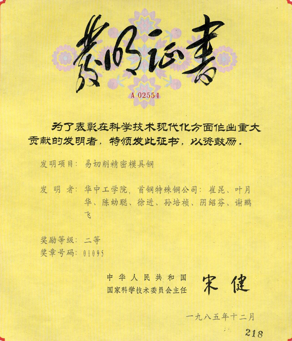 一系列高性能新型模具钢的出炉,为我国新型钢种发展做出了巨大贡献,按当时产值计算累计创造直接经济效益2亿多元,这些高性能模具钢已被列入国家科委“八五”、“九五”等国家科技成果重点推广项目,其中两种已列入国家工具钢标准。