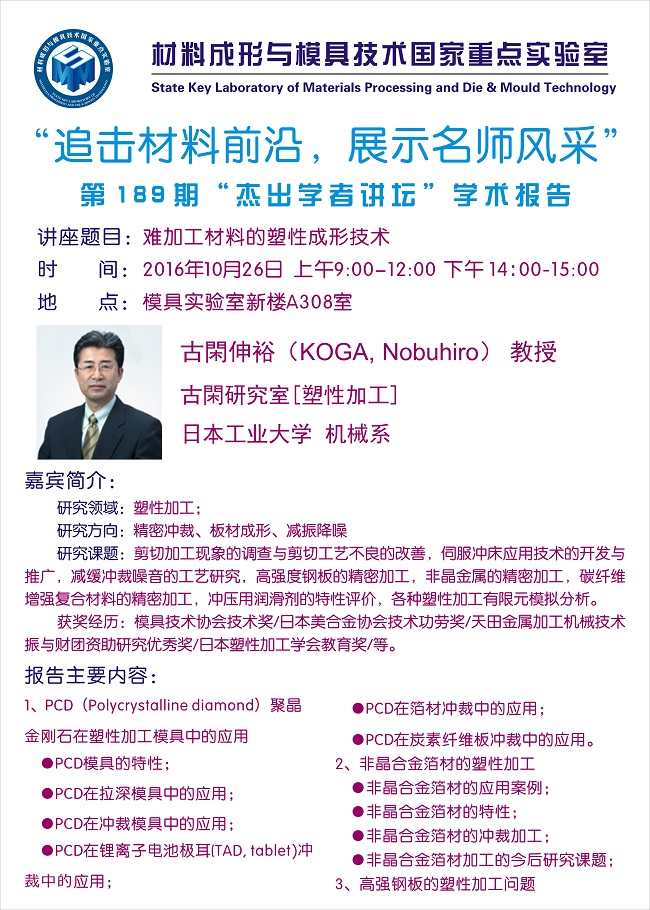 【2016年10月26日】第189期“杰出学者讲坛”学术报告