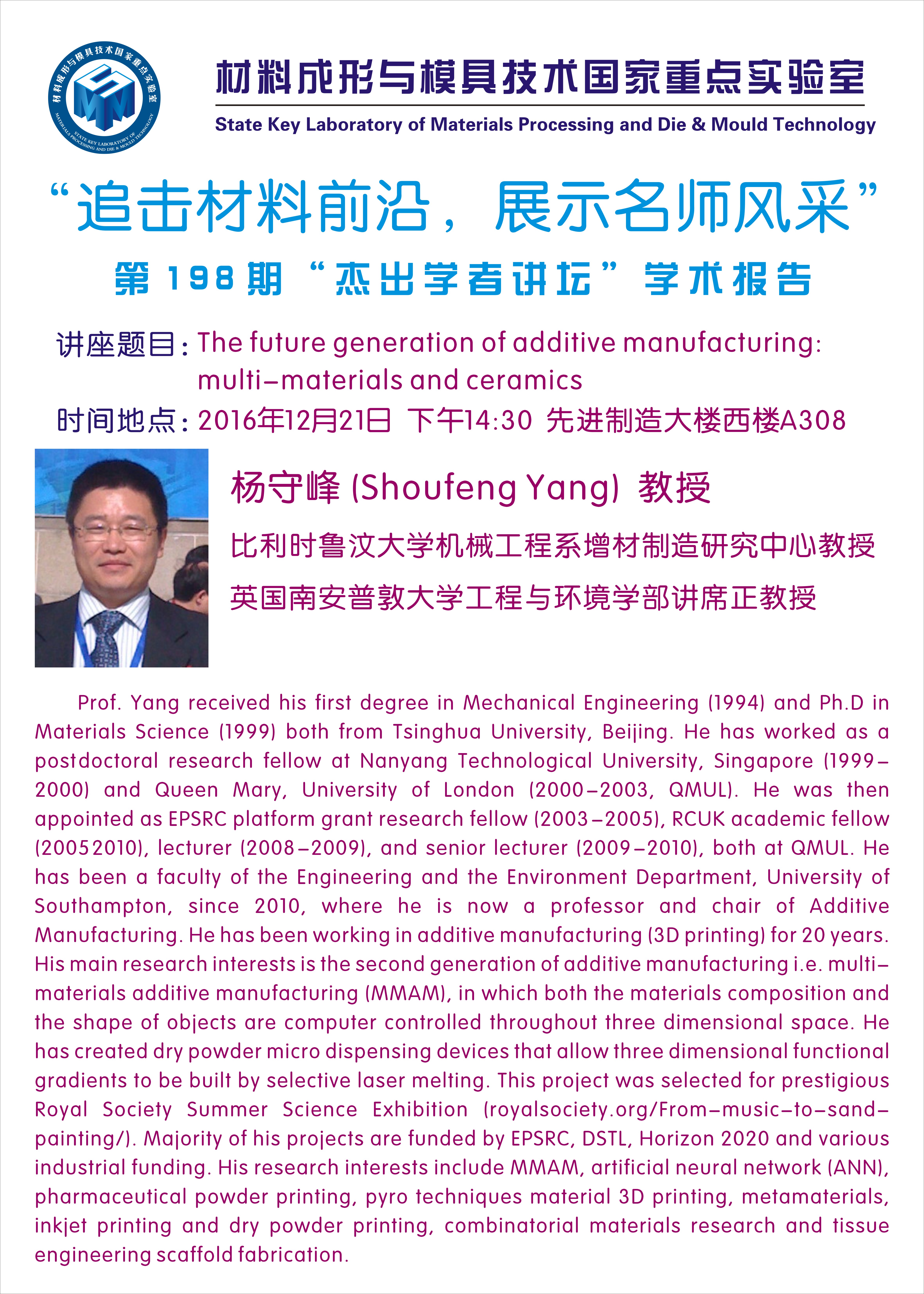 【2016年12月21日】第198期“杰出学者讲坛”学术报告