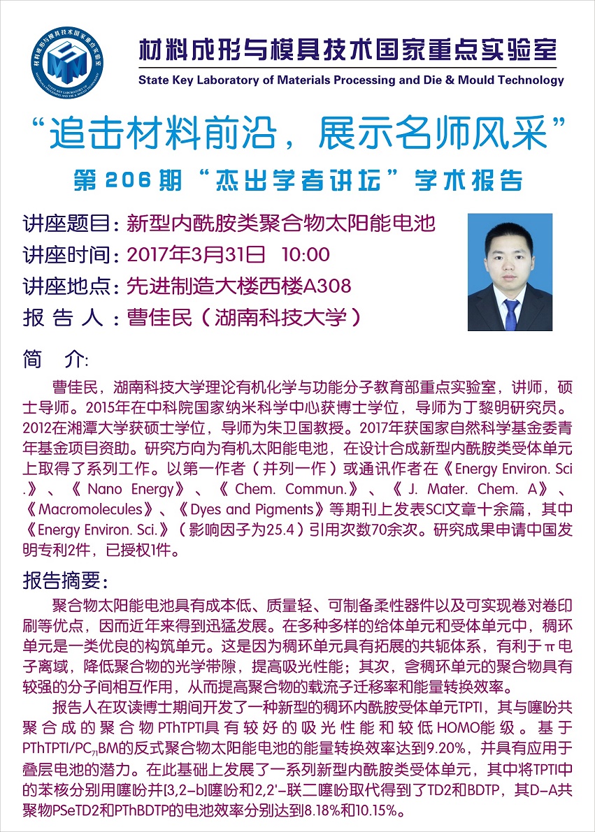 【2017年03月31日】第206期“杰出学者讲坛”学术报告