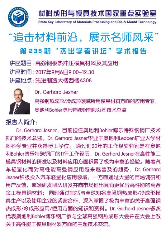 【2017年09月06日】第235期“杰出学者讲坛”学术报告
