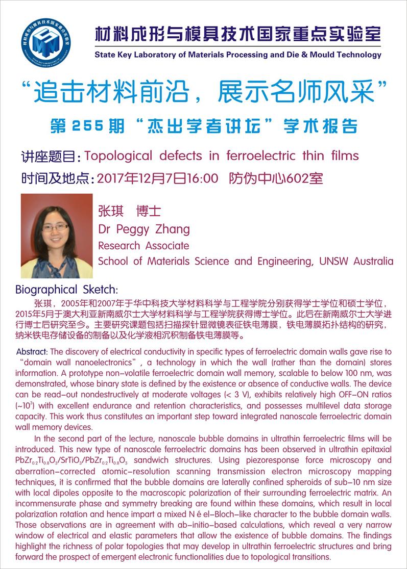 【2017年12月7日】第255期“杰出学者讲坛”学术报告