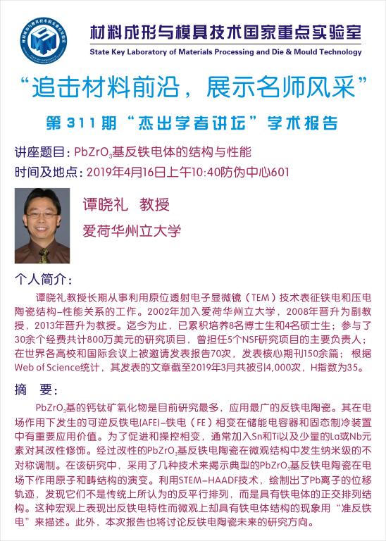 第311期杰出学者讲坛——爱荷华州立大学教授谭晓礼