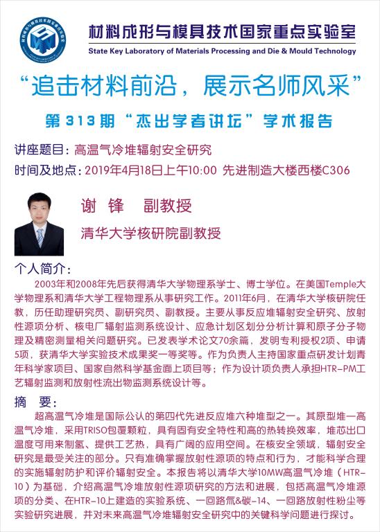 第313期杰出学者讲坛——清华大学核研院副教授谢锋