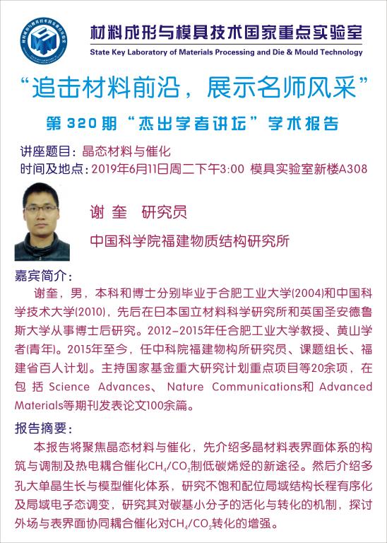 第320期杰出学者讲坛——中国科学院福建物质结构研究所谢奎研究员