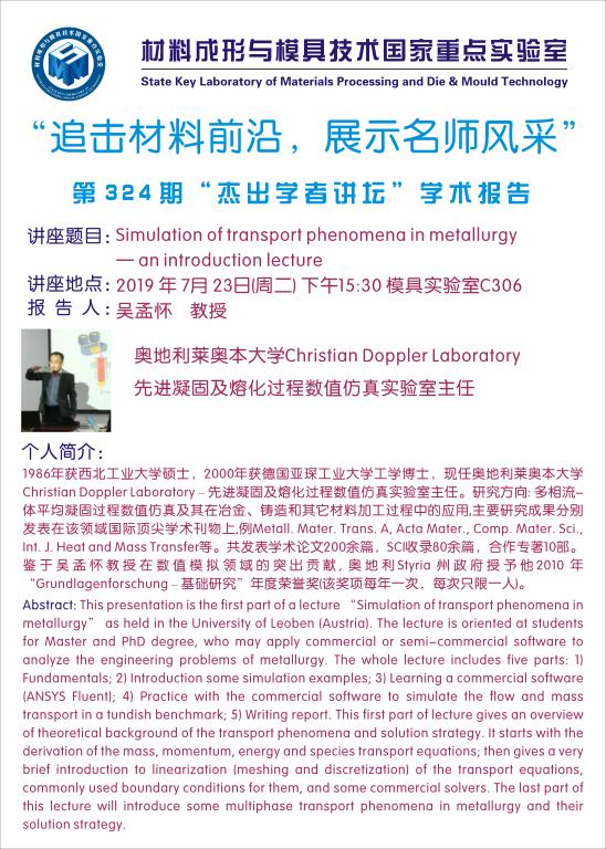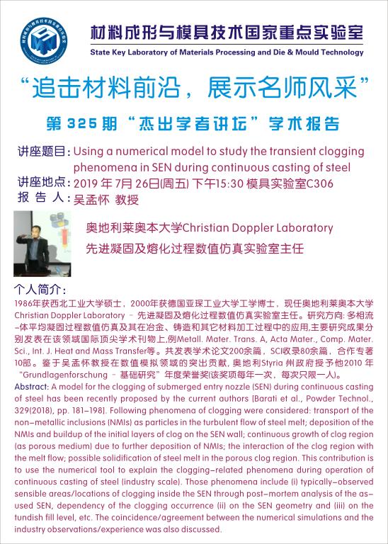 第324期/325期杰出学者讲坛——奥地利莱奥本大学吴孟怀教授