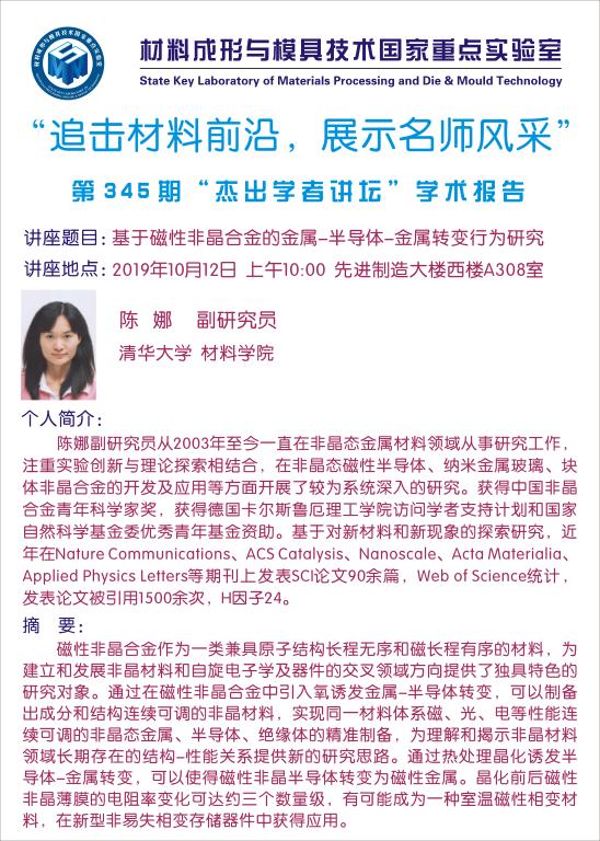 第345期杰出学者讲坛——清华大学副研究员陈娜