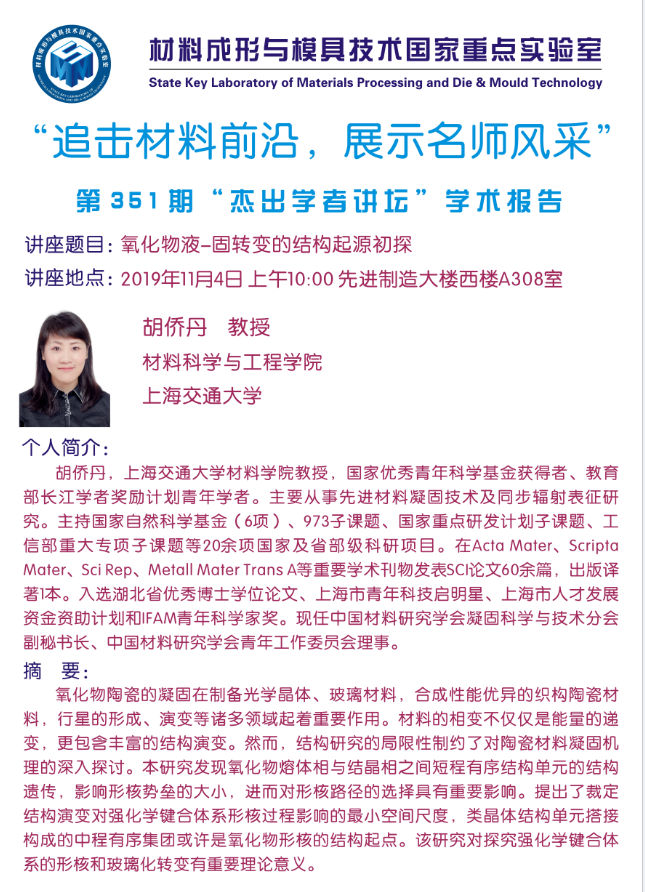 第351期杰出学者讲坛——上海交通大学教授胡侨丹