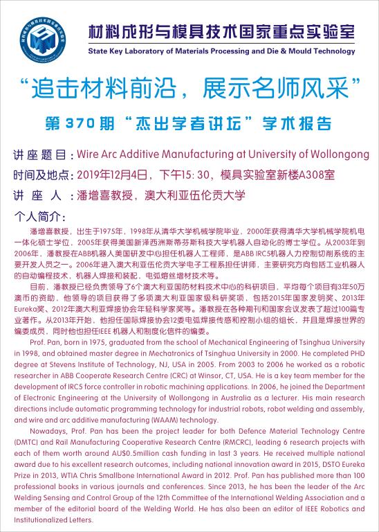 第370期杰出学者讲坛——澳大利亚伍伦贡大学教授潘增喜