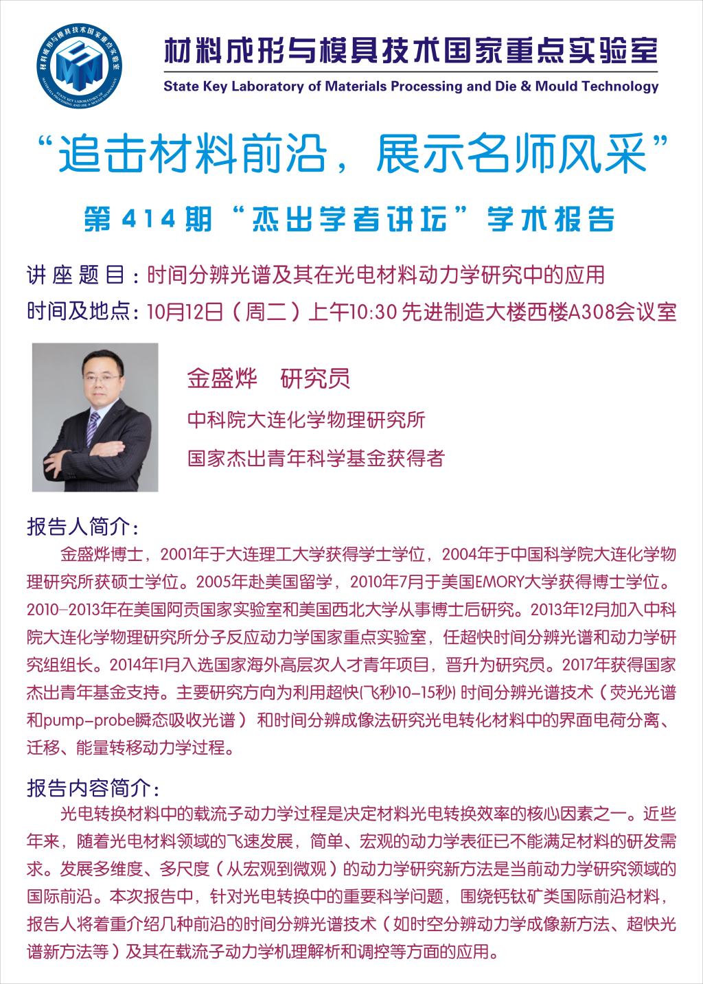 2021年10月12日"杰出学者”讲坛:时间分辨光谱及其在光电材料动力学研究中的应用