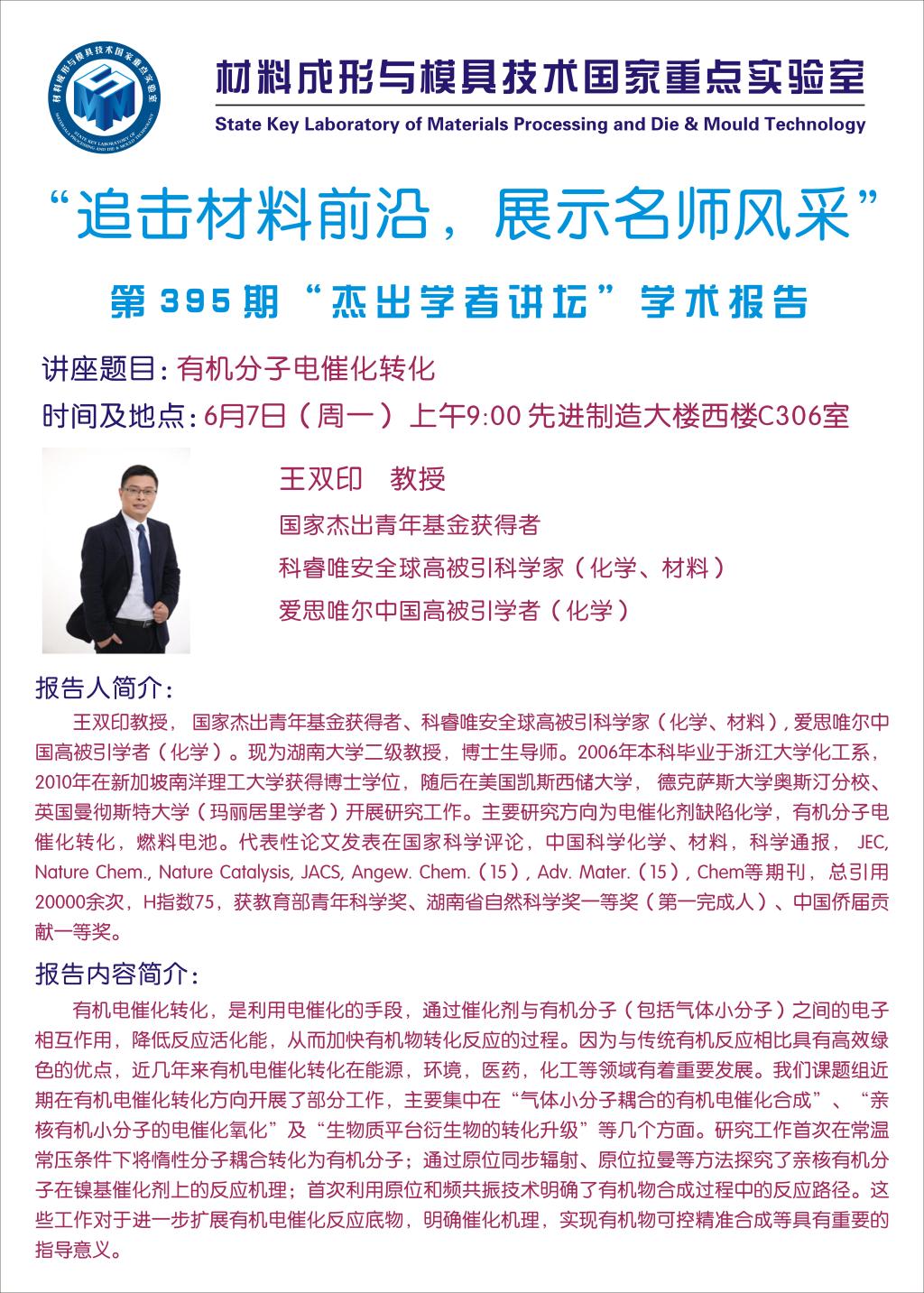 第395期杰出学者讲坛——湖南大学王双印教授
