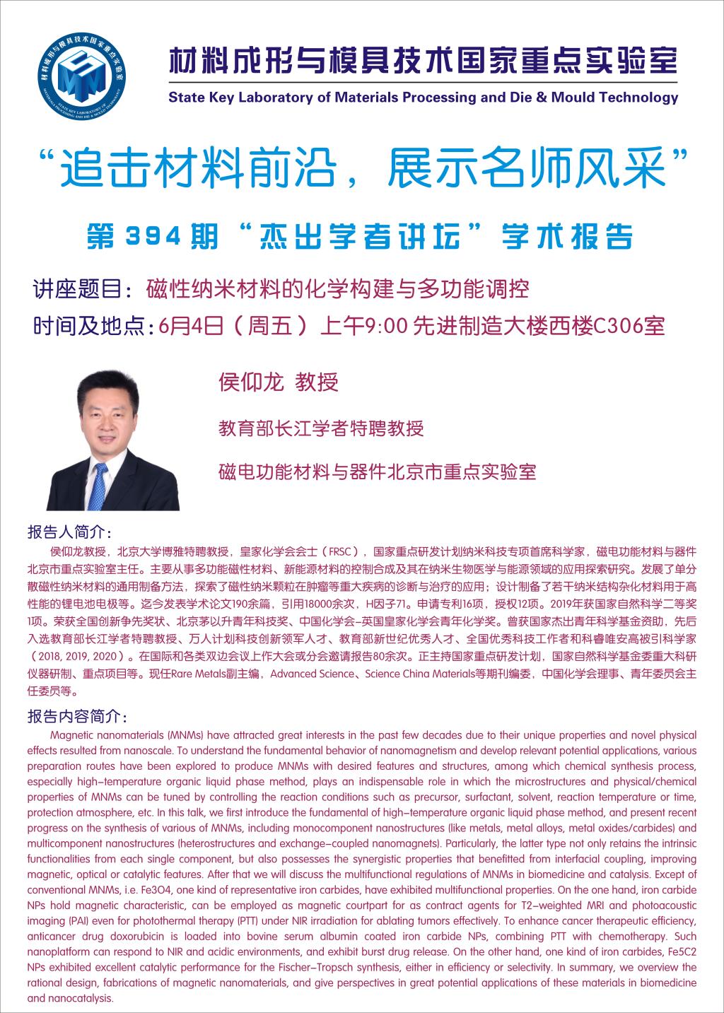 第394期杰出学者讲坛——磁电功能材料与器件北京市重点实验室侯仰龙教授