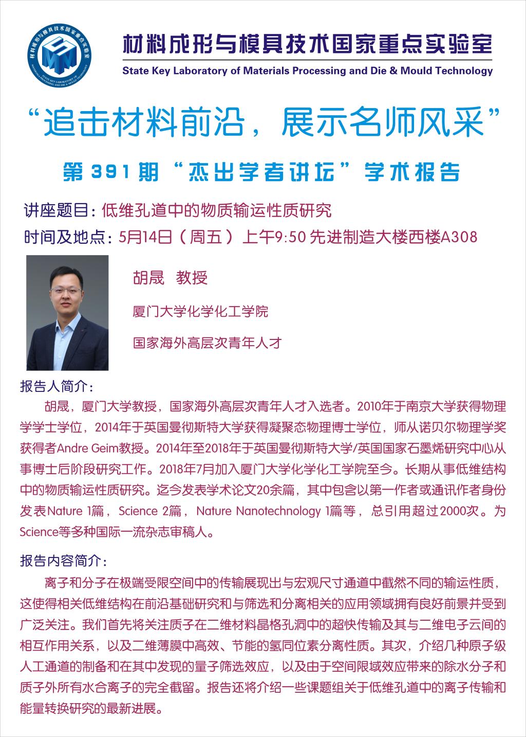 第391期杰出学者讲坛——厦门大学教授胡晟