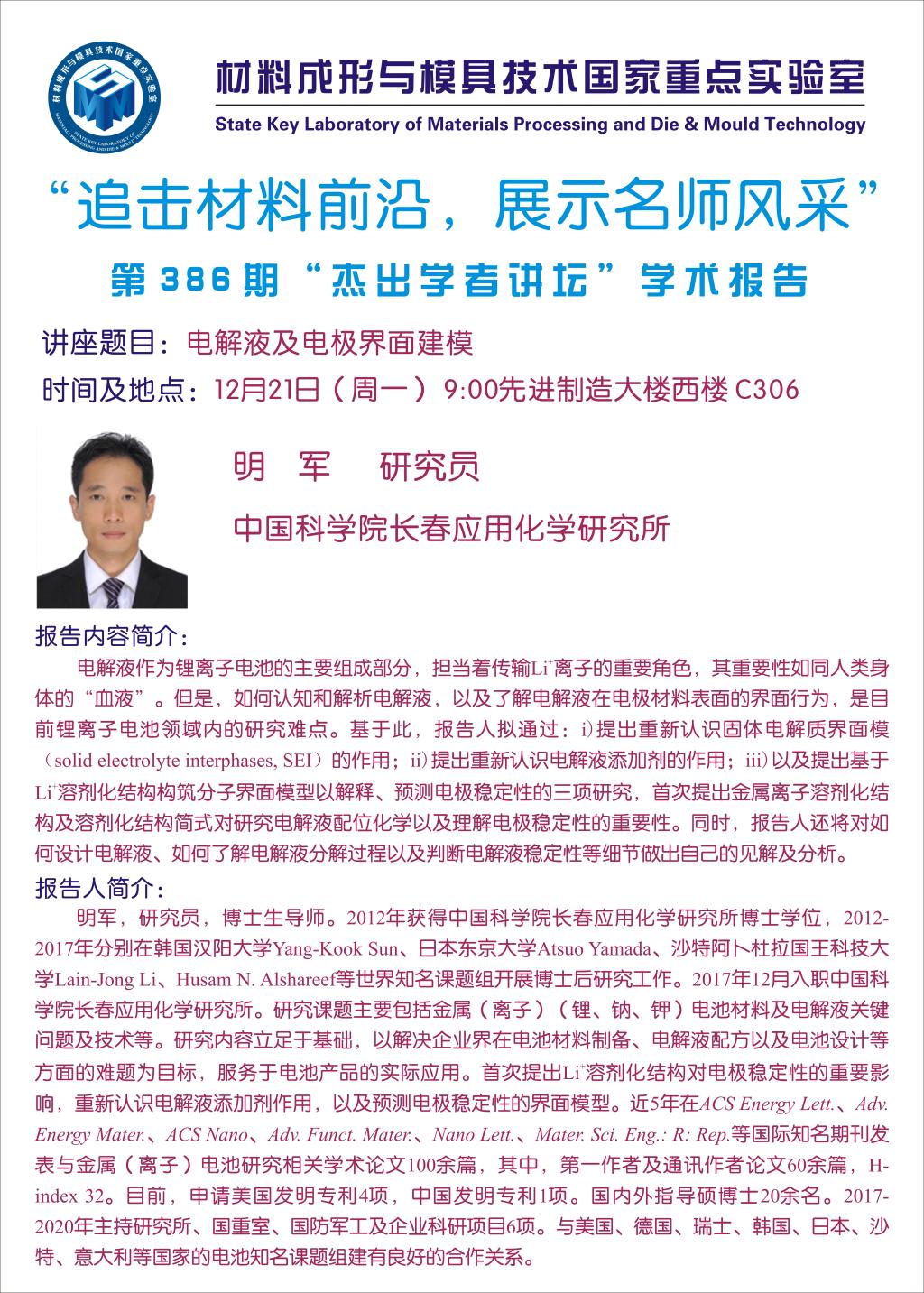 第386期杰出学者讲坛——中科院长春应用化学研究所研究员明军