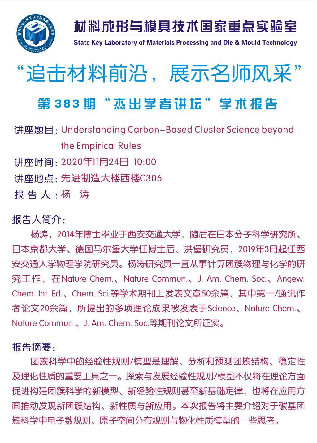 第383期杰出学者讲坛——西安交通大学杨涛研究员