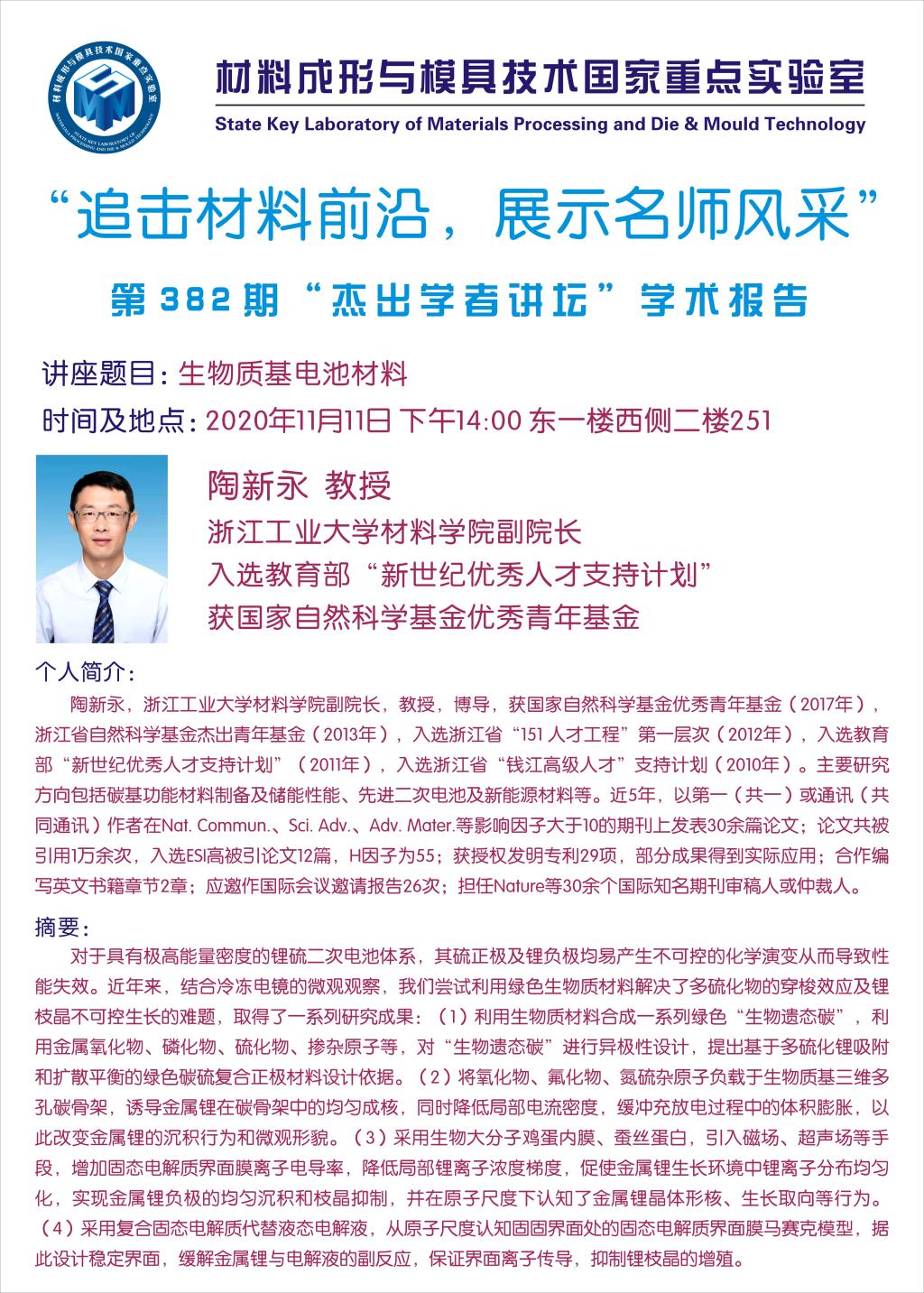 第382期杰出学者讲坛——浙江工业大学陶新永教授