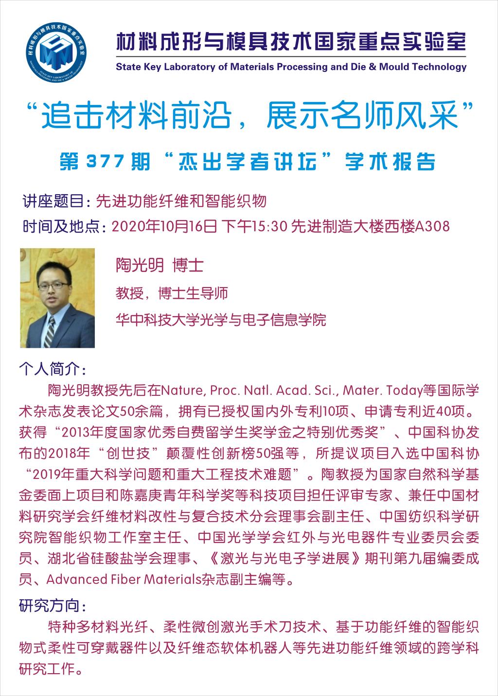 第377期杰出学者讲坛——魔性论坛 教授陶光明