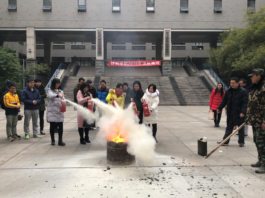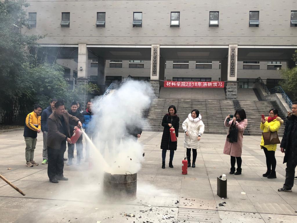 组织全体师生在先进制造大楼西楼进行2018年消防安全培训讲座及现场消防应急演习活动。