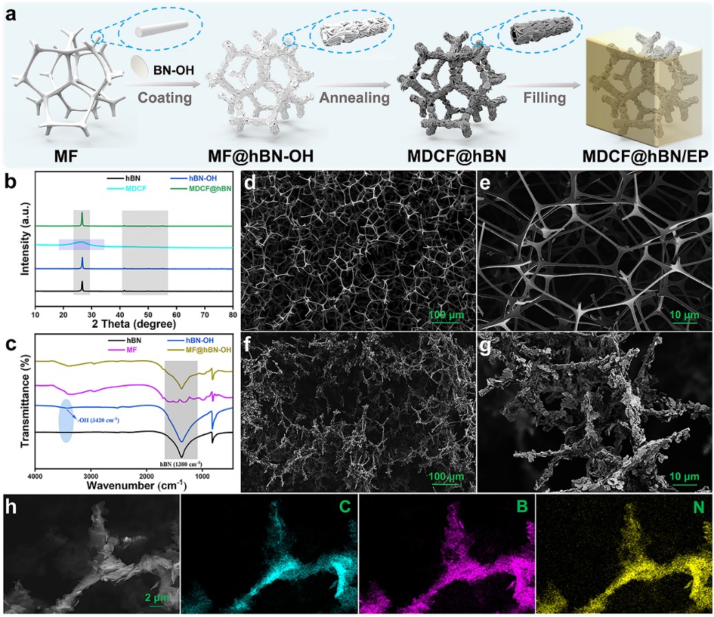 图 2. MDCF@hBN/EP合成过程示意图以及相组成与微结构