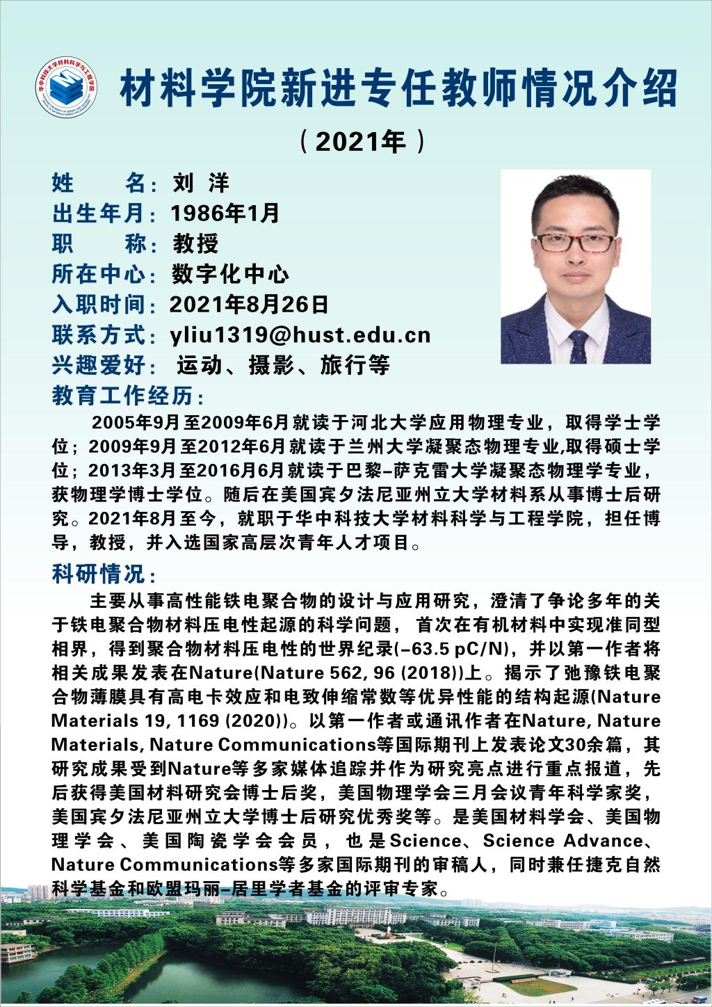 中心新进教师刘洋教授介绍