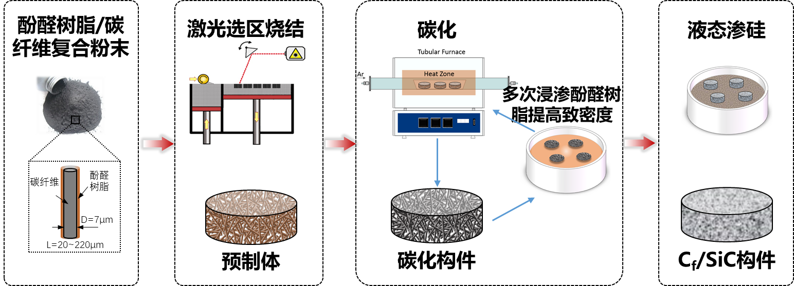 图4 碳纤维/碳化硅复合材料构件的激光粉末床熔融整体3D打印方法