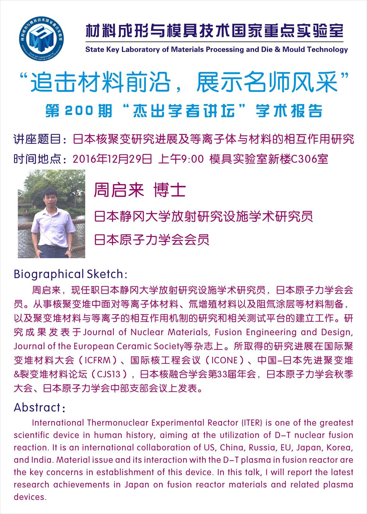 【2016年12月21日】第198期“杰出学者讲坛”学术报…