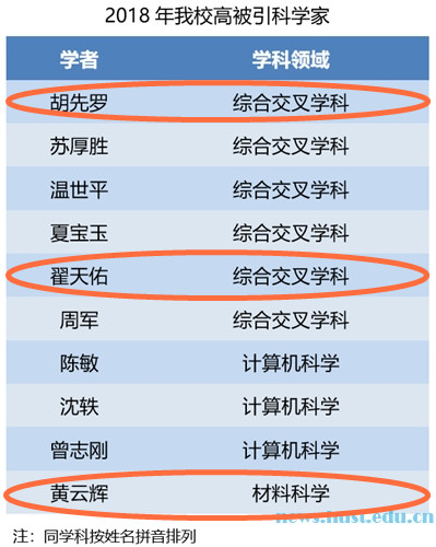 我院3位学者入选2018年全球高被引科学家名单