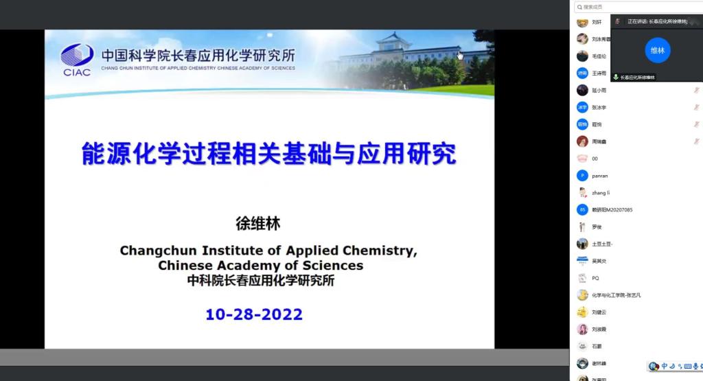 2022年10月28日下午14:45-16:45,徐维林研究员应魔性论坛 李箐教授邀请,以腾讯会议线上形式为全院师生进行讲座并答疑,题为“能源化学相关过程相关基础与应…